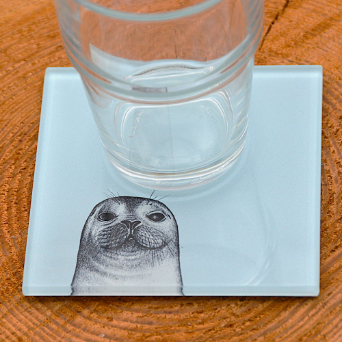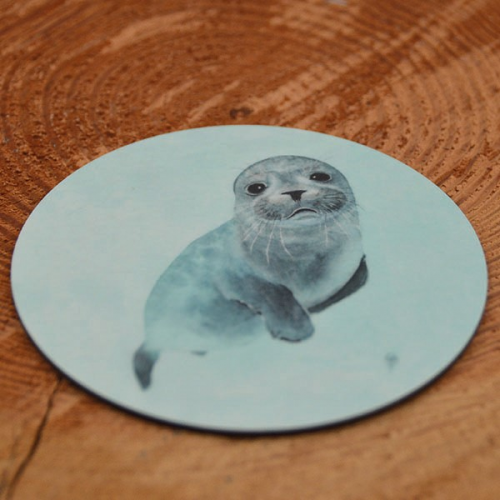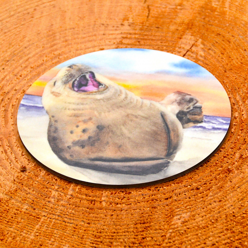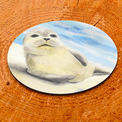 Untersetzer, rund, DK56 "Weißer Seehund am Strand"